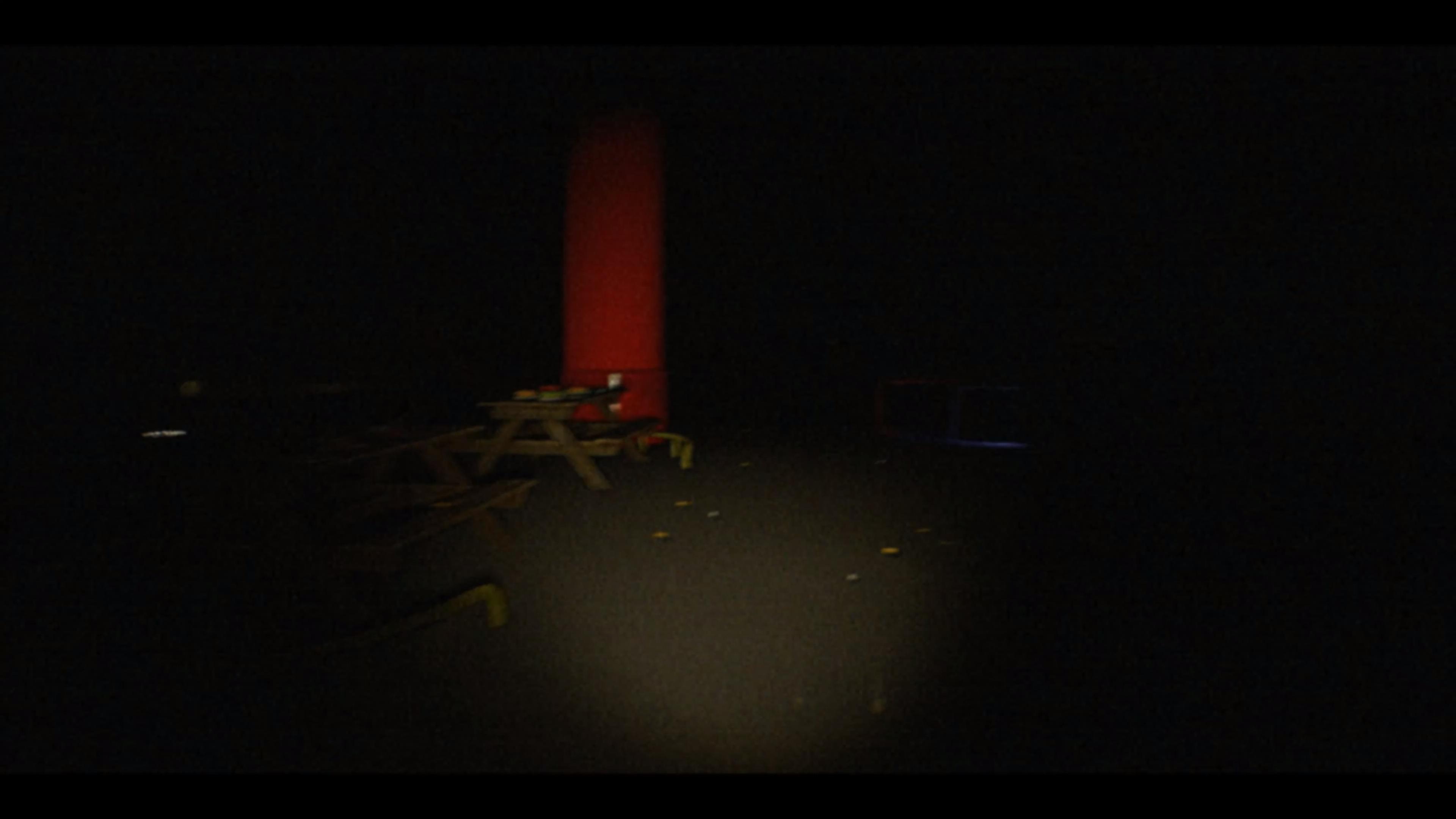 Flickering lights and glitch-like visual effects (photosensitivity caution).